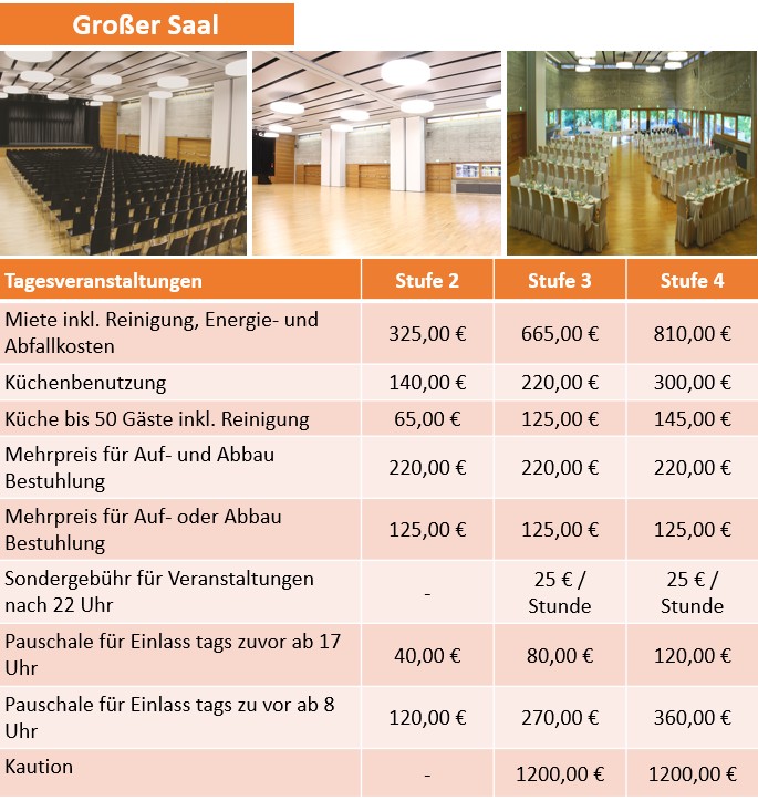Mit rund 500 Quadratmetern ist der Große Saal Heidelberg im Bürgerhaus Heidelberg der zweitgrößte städtische Veranstaltungsraum in Heidelberg, ideal für große öffentliche und private Feiern. Ausgestattet mit Bühne und Küche bietet er den perfekten Rahmen, um Ihre Veranstaltung stilvoll, professionell und unvergesslich zu gestalten.
